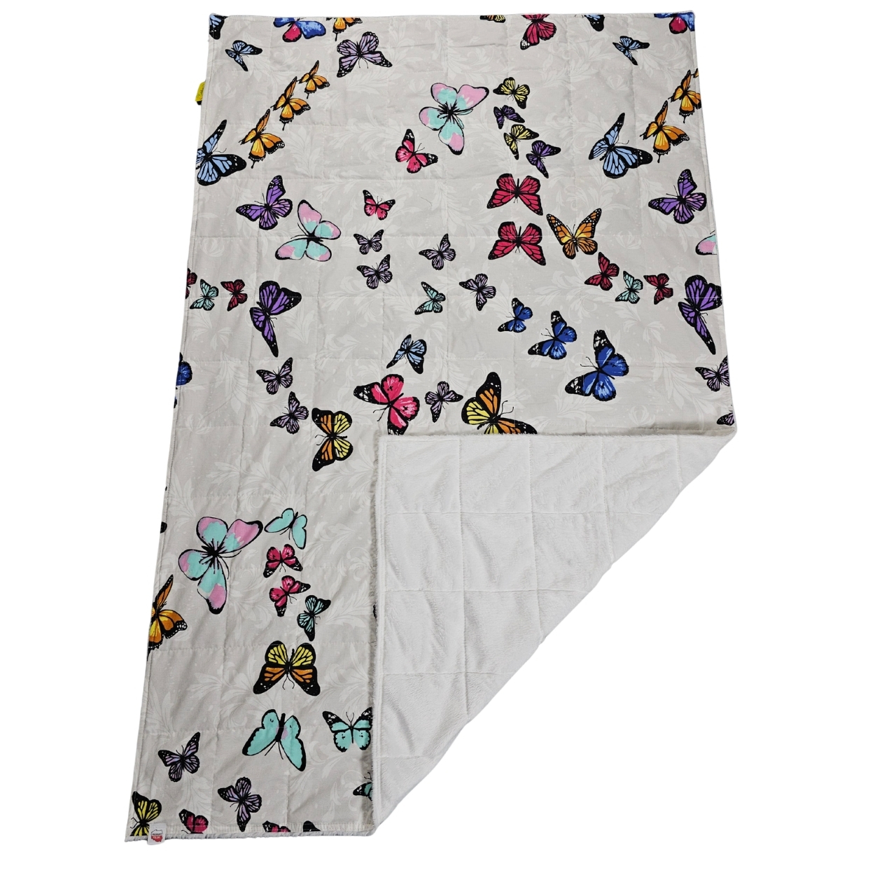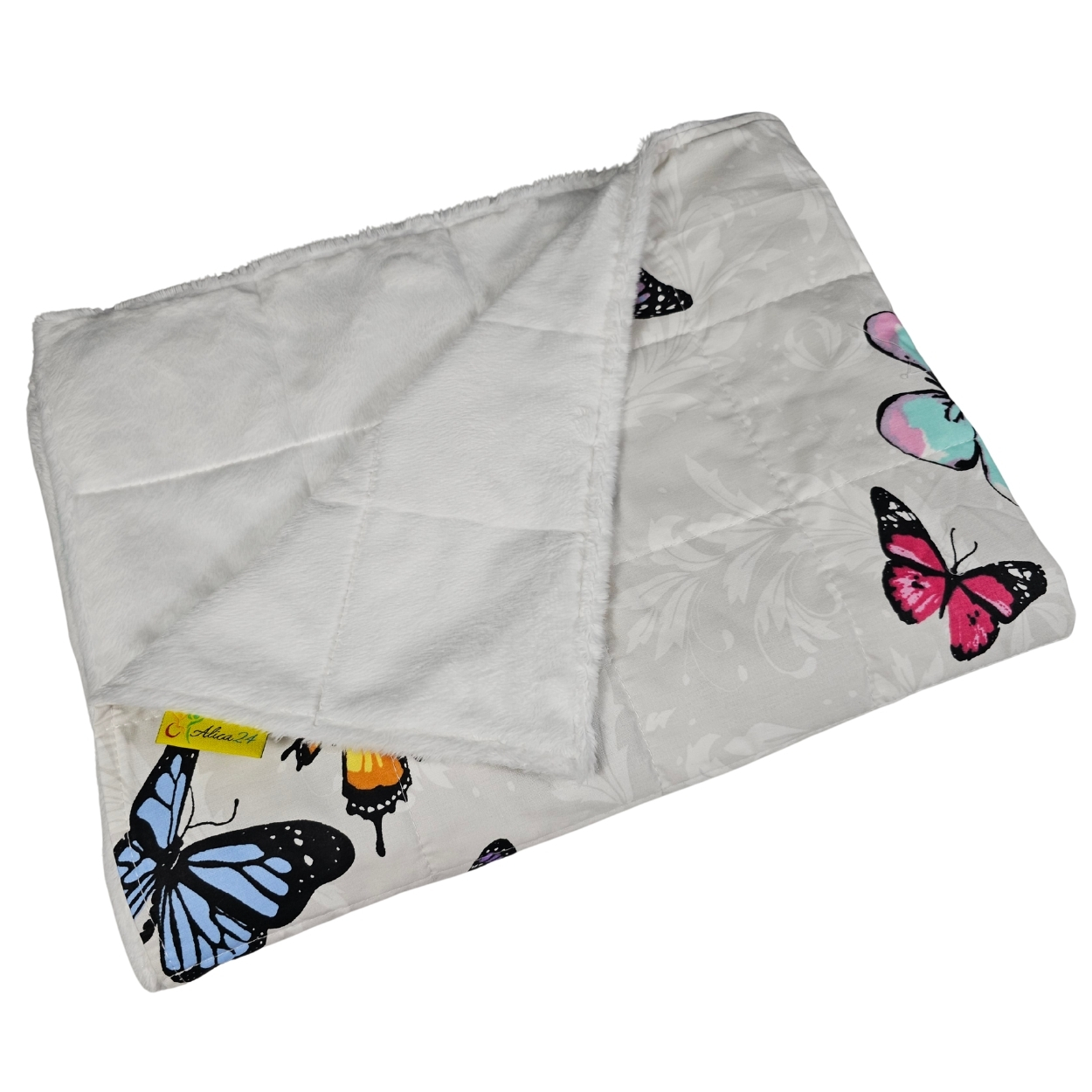 Gewichtsdecke Baumwolle + Fell – Bunte Schmetterlinge