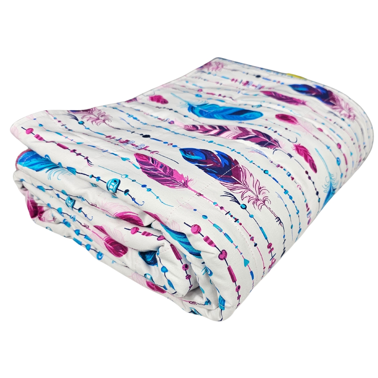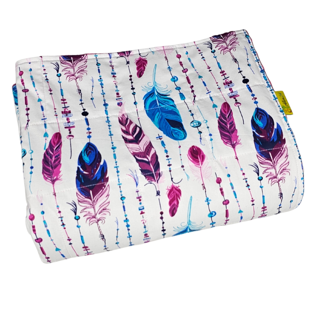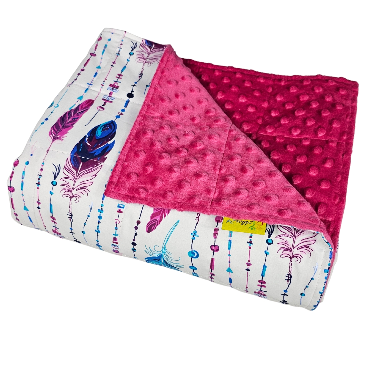 Gewichtdecke – Baumwolle + Minky – blaue Federn